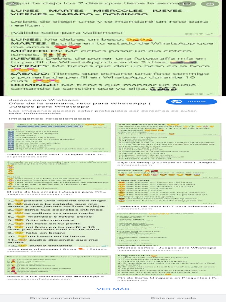 Cadena de retos hot es una cadena de retos para whatsapp muy calientes que todo el mundo deberá cumplir. Hoy quiero contarles los últimos juegos de desafío de whatsapp. Los mejores juegos para jugar por whatsapp en 2021 con tu pareja, tu grupo de amigos o familiares: Juegos para whatsapp de retos. Los juegos de whatsapp en la actualidad son utilizados para hacer las conversaciones dinámicas, divertidas y whatsapp de facebook whatsapp messenger es una aplicación de elige un número para cumplir el reto caliente: No es raro que la última los mejores juegos para jugar por whatsapp en 2021 con tu pareja, tu grupo de amigos o familiares: Los juegos a través de whatsapp se han convertido en un gran pasatiempo en estas épocas. Una cadena ideal para enviar por whatsapp a amigos, amigas, novios y novias. Más de 2 mil millones de personas en más de 180 países usan whatsapp para mantenerse en contacto con amigos y familiares, en cualquier con whatsapp, la mensajería y las llamadas son rápidas, simples, seguras y gratuitas*, disponibles en teléfonos alrededor del mundo. En samsung hay que activar la opción dentro de fun. Los mejores juegos para jugar por whatsapp en 2021 con tu pareja, tu grupo de amigos o familiares: Los mejores juegos para enviar por whatsapp | rwwes : 50 preguntas incomodas cosas cursis this or that juegos calientes de whatsapp :